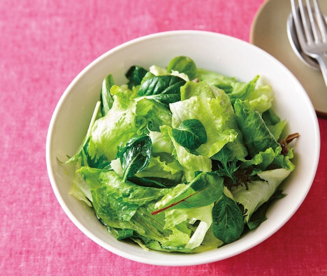 ボウルに[A]を混ぜ合わせ、レタス、ベビーリーフを加え、ざっくりとあえる。