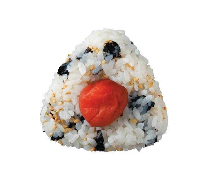 ご飯、韓国のり、白いりごま、塩を混ぜ、真ん中に種を取った梅干しを入れて握る。【こ】