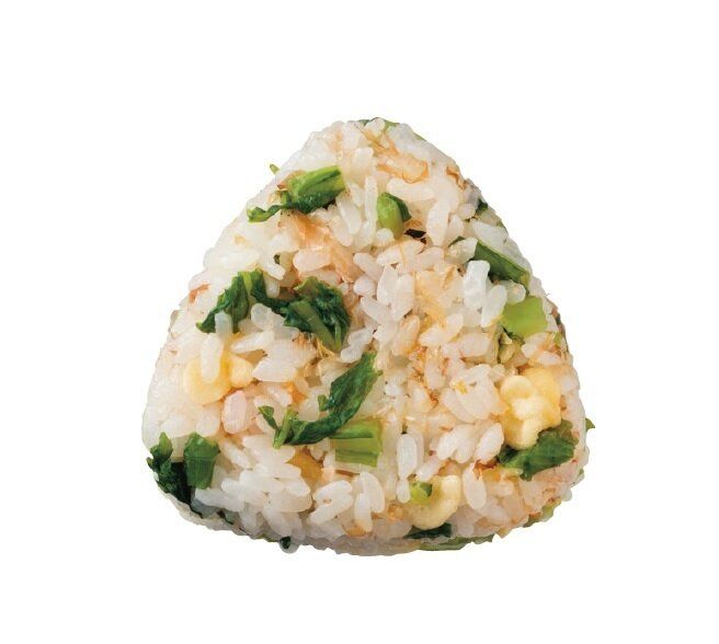 ご飯、塩もみした大根の葉、揚げだま、削り節、塩を混ぜて握る。【せ】