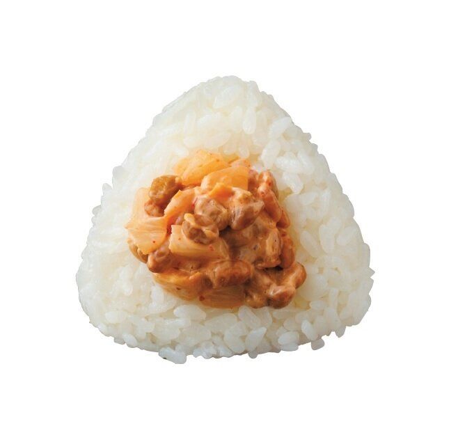 納豆、添付のたれ、白菜キムチ、マヨネーズを混ぜ、ご飯の真ん中に入れて握る。【キ】