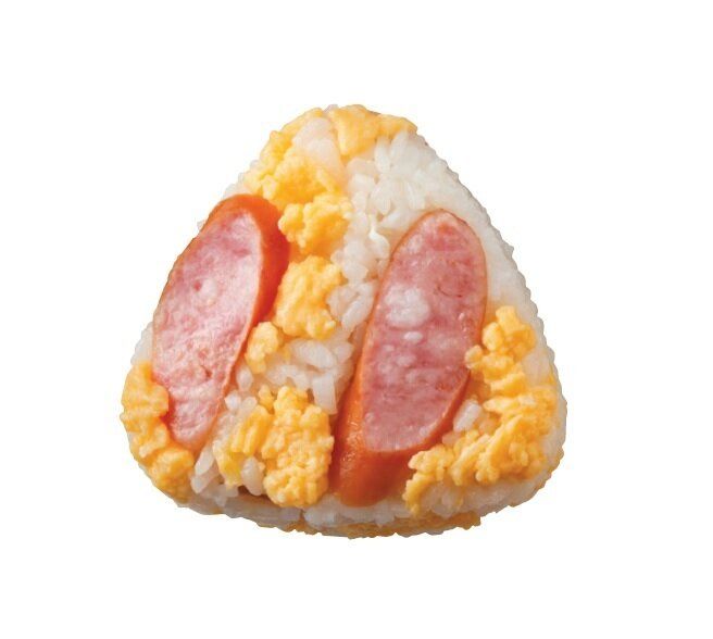 ご飯、炒めたウインナー、いり卵、塩を混ぜて握る。【こ】