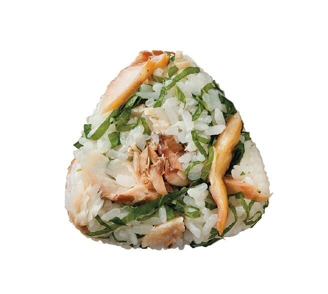 ご飯、さばの水煮(缶)、塩を混ぜて握り、青じそを巻く。【こ】