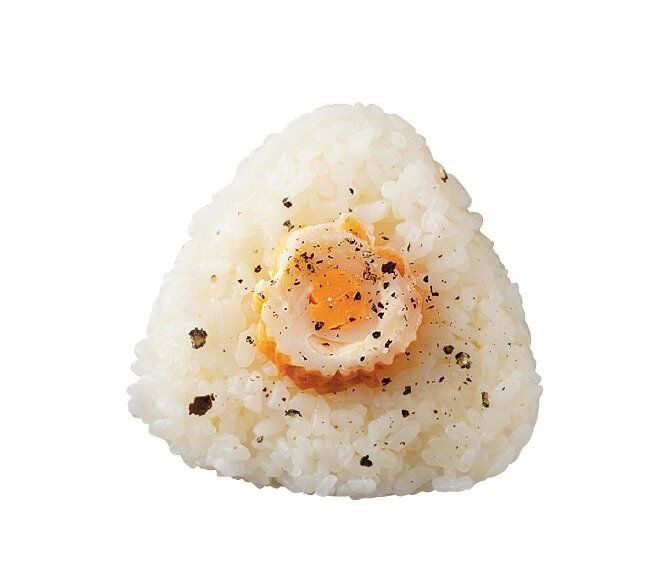 ご飯に塩を混ぜ、真ん中にチーズ入りちくわを入れて握り、粗びき黒こしょうをふる。【キ】