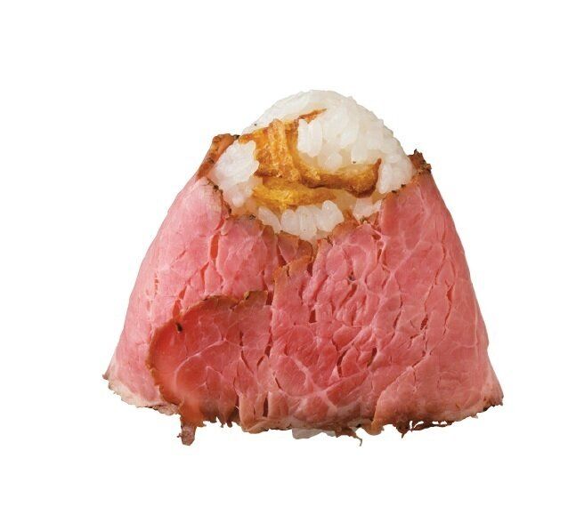 ご飯、フライドオニオン、塩を混ぜて握り、ローストビーフを巻く。【せ】