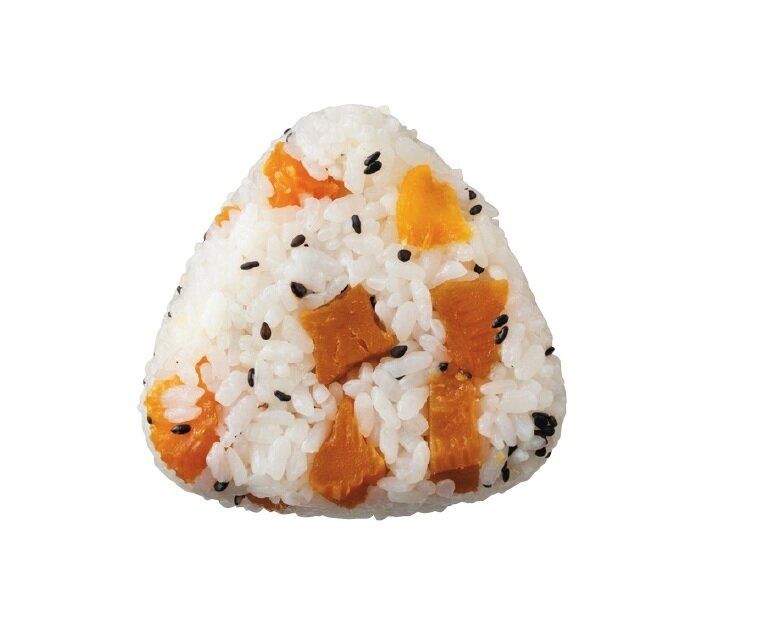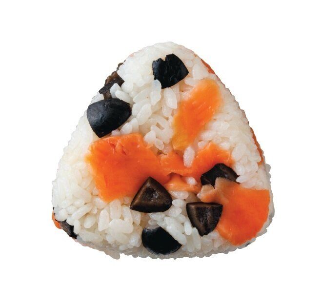 ご飯、スモークサーモン、ブラックオリーブ、塩を混ぜて握る。【せ】