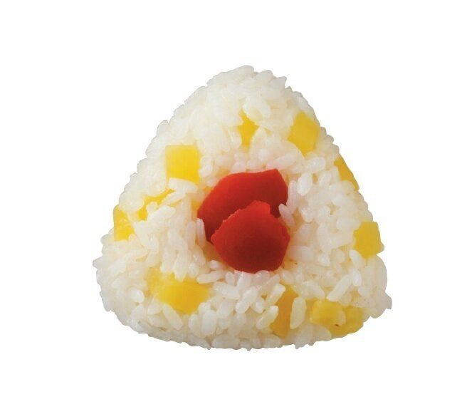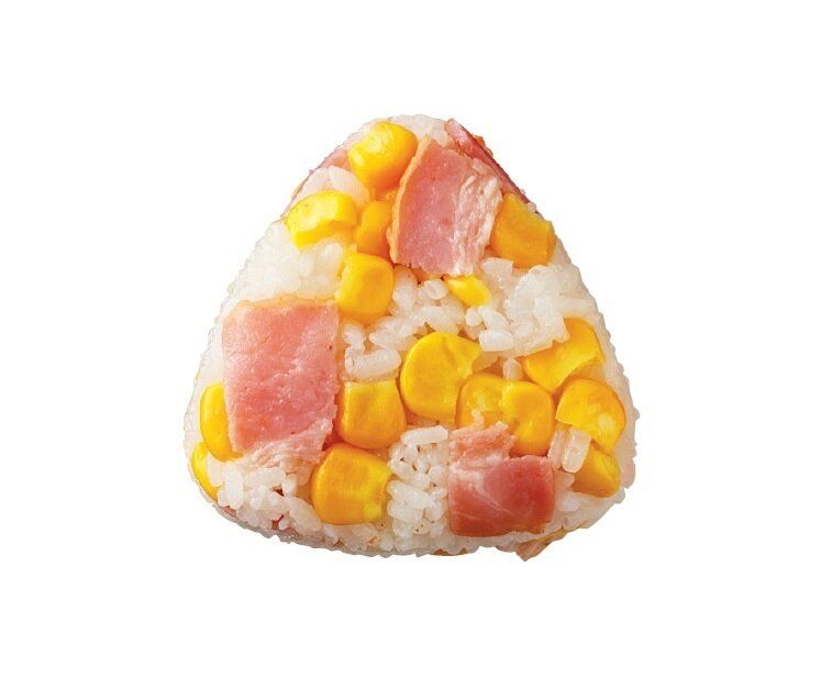 ご飯、バターで炒めたベーコンとコーン、塩を混ぜて握る。【こ】