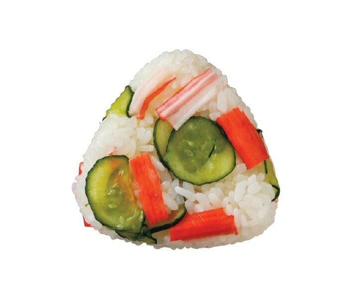 ご飯、かにかま、塩もみしたきゅうり、塩を混ぜて握る。【キ】