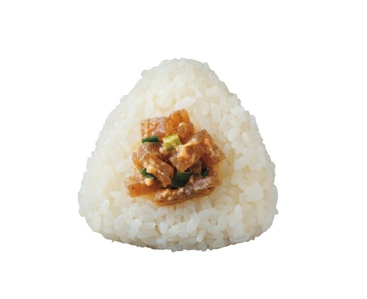 ご飯に塩を混ぜ、真ん中にこんにゃくねぎみそを入れて握る。【キ】