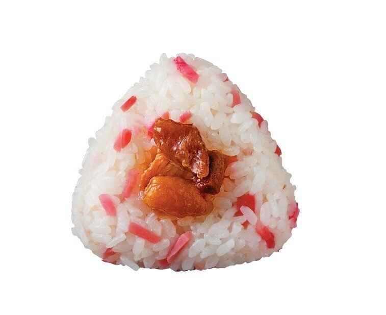 ご飯、紅しょうが、塩を混ぜ、真ん中に焼きとり(缶)を入れて握る。【せ】