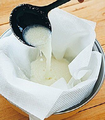 ※絞った後の水分はホエー(乳清)と呼ばれ、栄養たっぷり。捨てずにスープやみそ汁などに使うとよい。