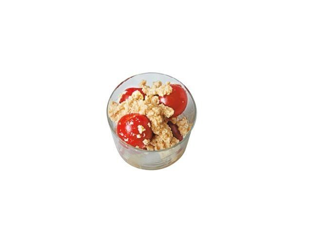 カッテージチーズ50g、オリーブ油大さじ2、しょうゆ大さじ1/2、レモンの絞り汁少々を混ぜ、ミニトマト8~10個を加えて混ぜる。