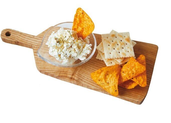 カッテージチーズにハーブ塩をふり、ディップに。好みのチップスにつけながら食べる。