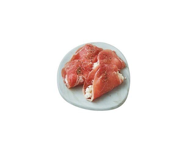 生ハムにカッテージチーズをのせて半分に折り、粗びき黒こしょうをふる。