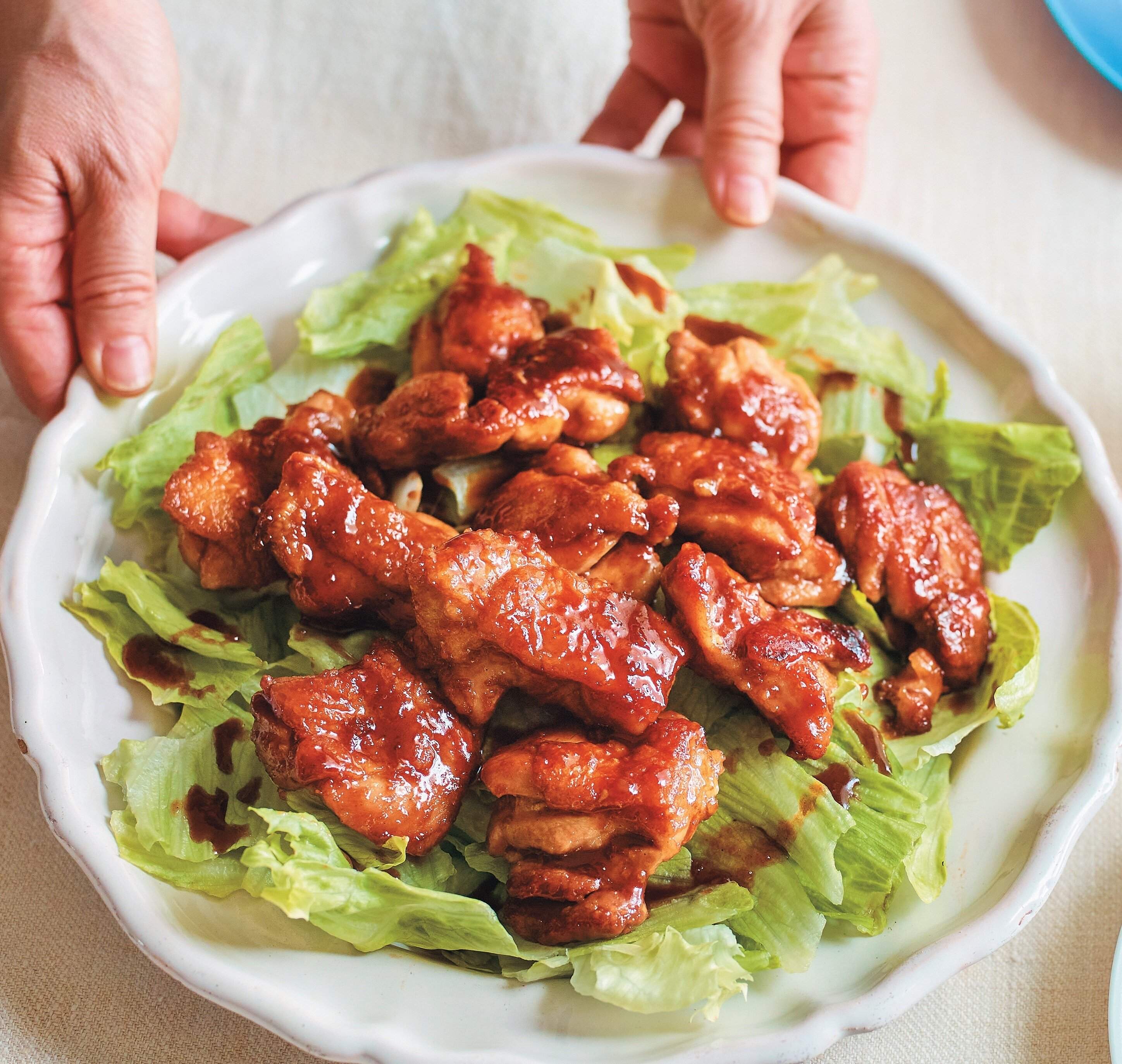 フライパンの脂を拭き取り、みりんを加える。強めの中火で煮立て、[A]を加えてとろっとするまで炒め合わせる。レタスを敷いた器に盛る。(小林)