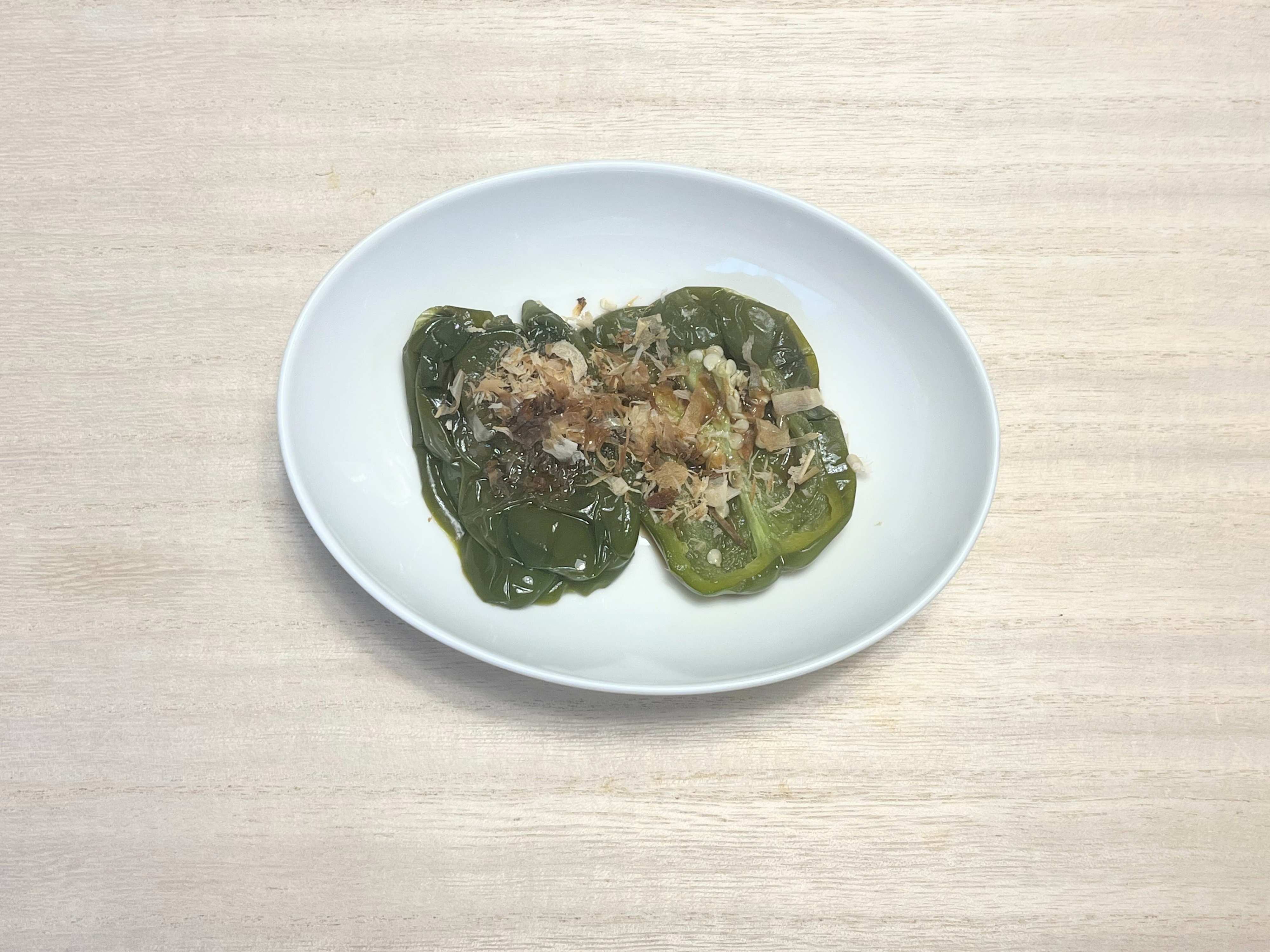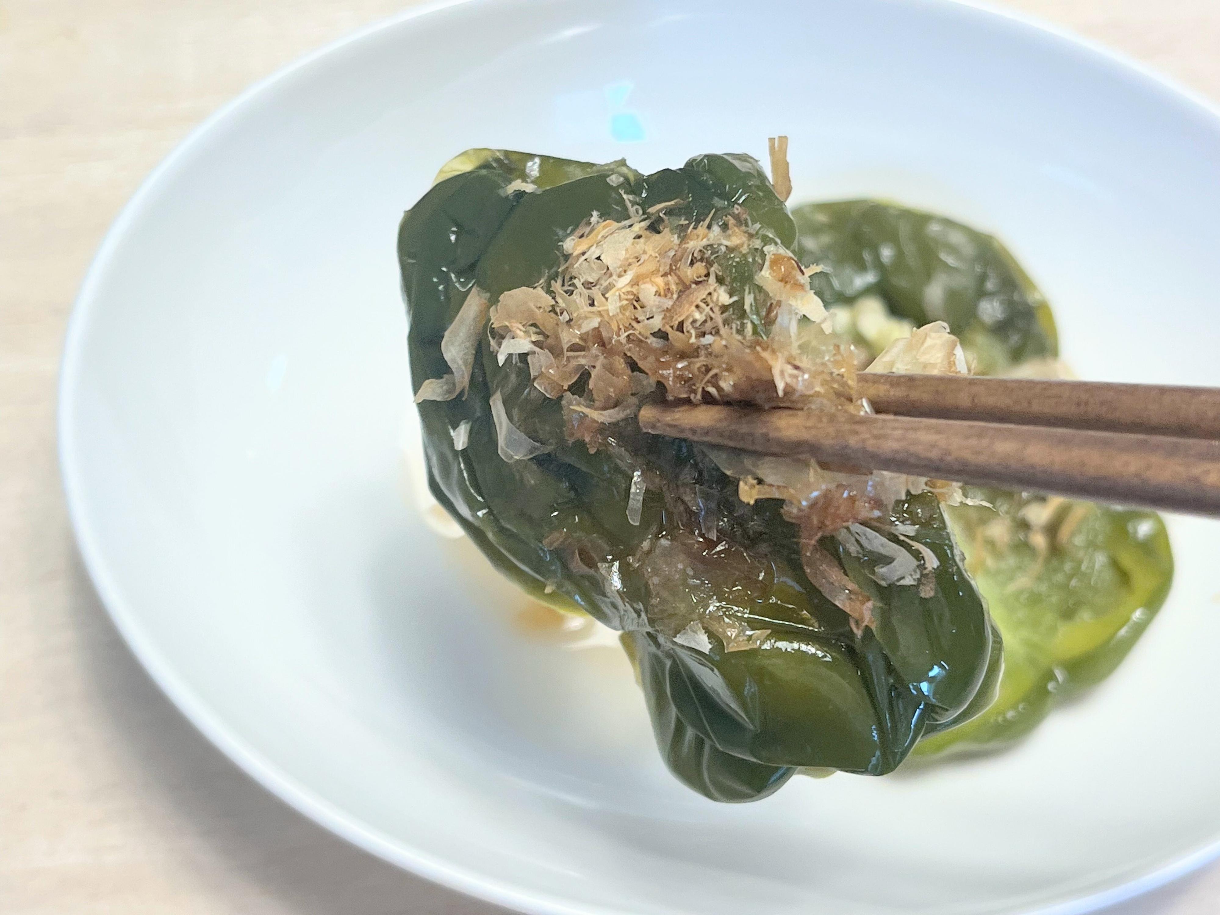 調理時間わずか5分でピーマンを丸ごと食べることができるレシピ。
