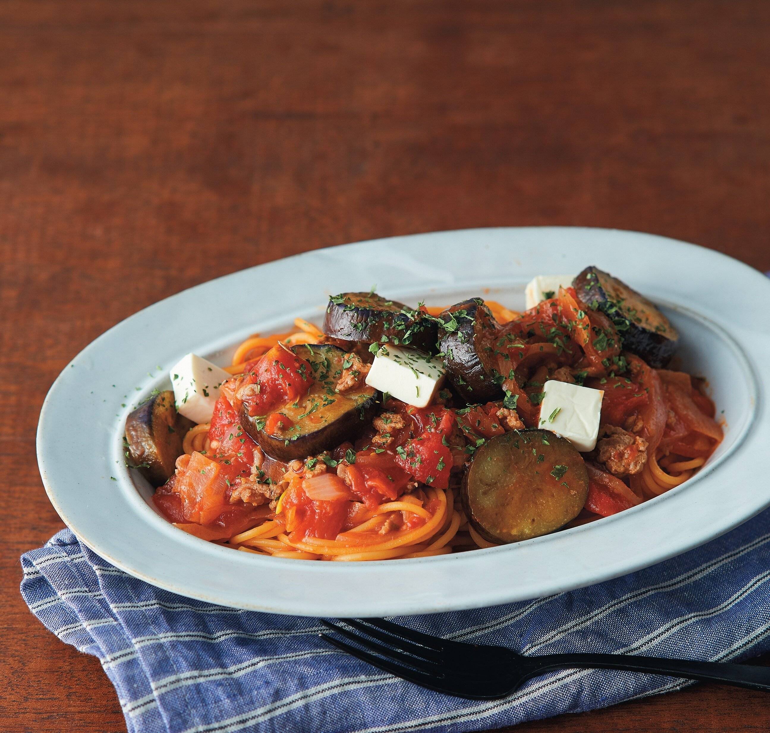 なすとひき肉のトマトパスタ