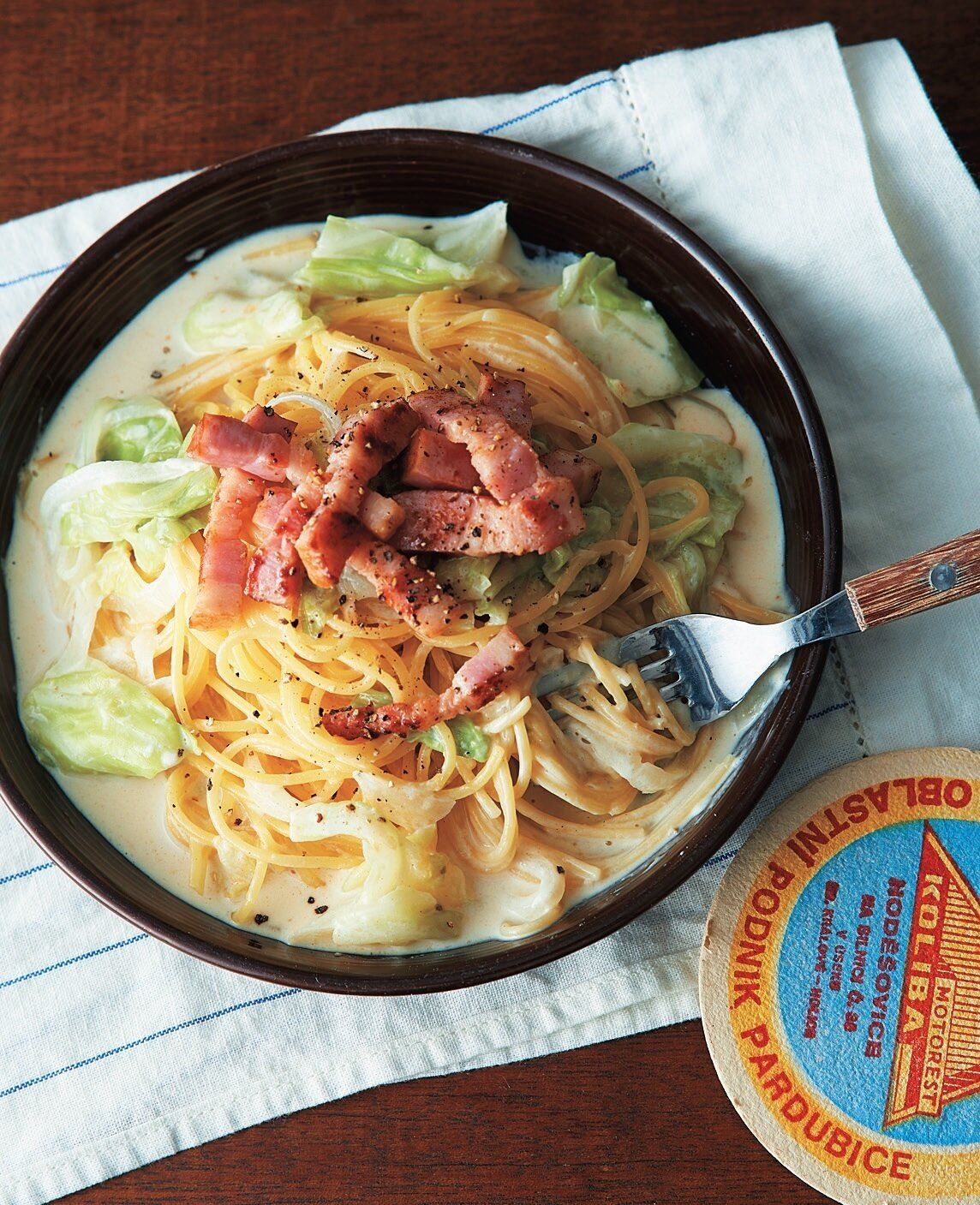 キャベツとベーコンのチーズクリームパスタ