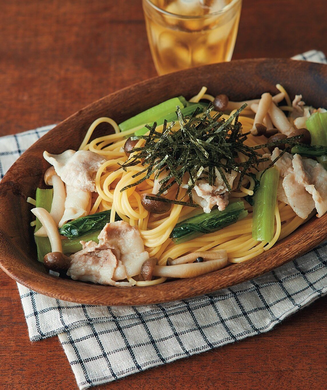 豚バラ肉ときのこのめんつゆバターパスタ