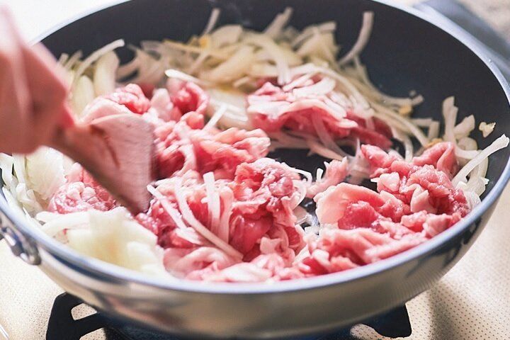 ●玉ねぎと肉は同時に炒め始めてヨシ!