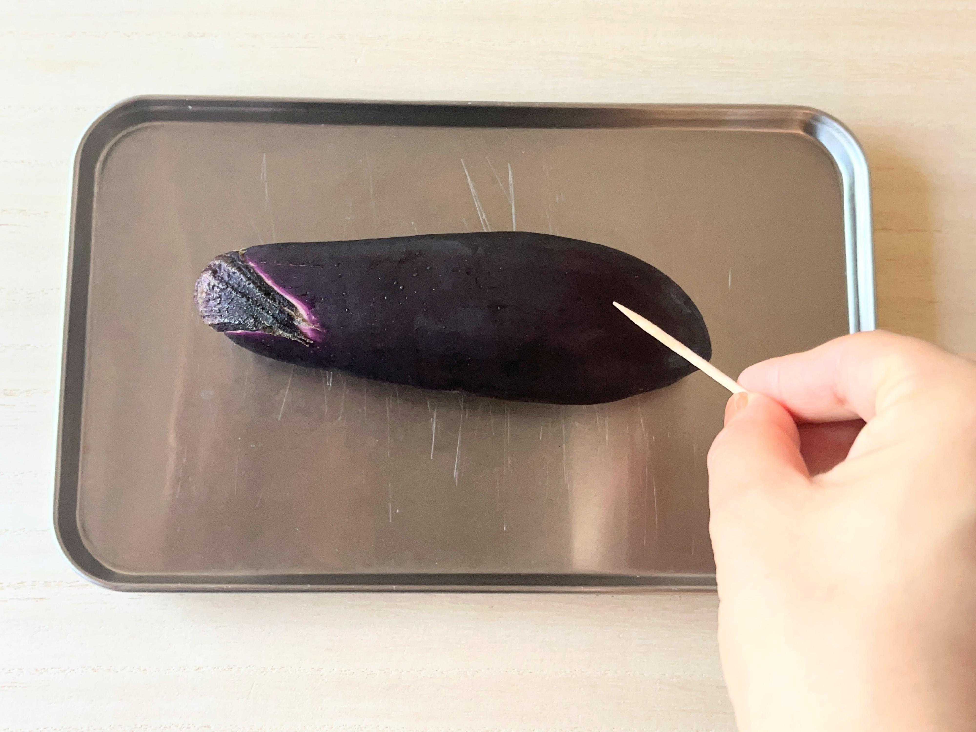1.なすに爪楊枝で数か所穴をあける