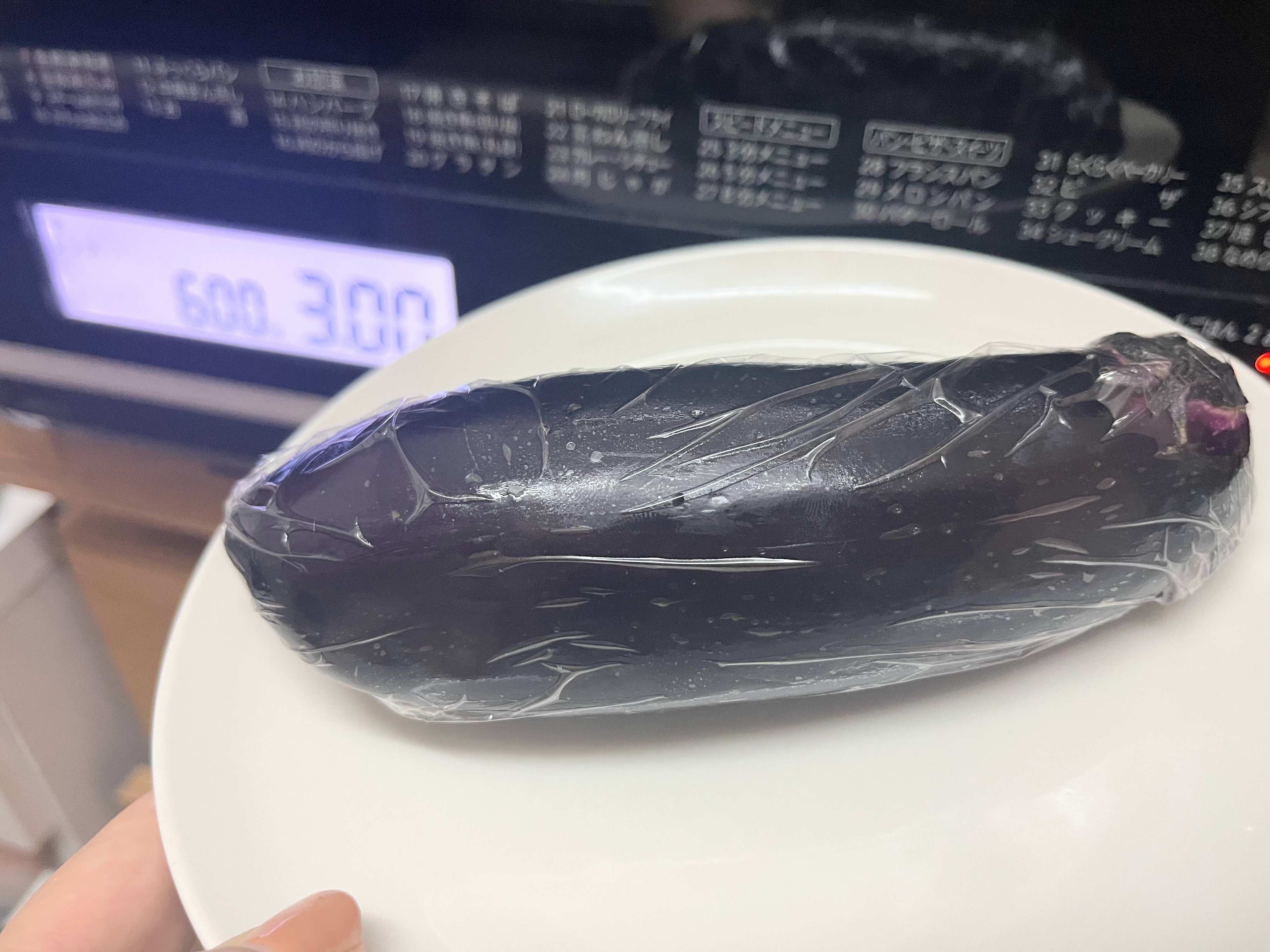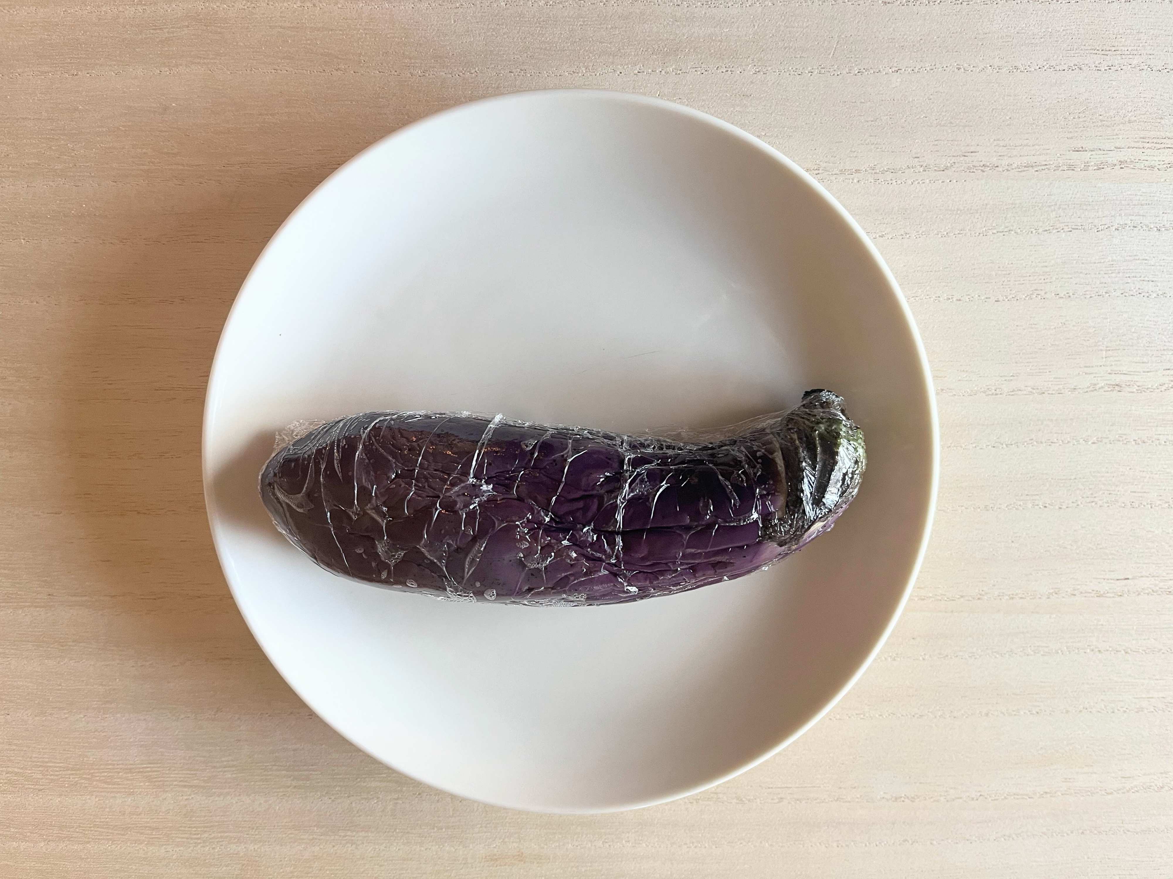 電子レンジは毎日のように使いますが、なすをカットせずに丸ごと入れるのは初めてです。一体どうなるのか、やや緊張しつつのセットでした。