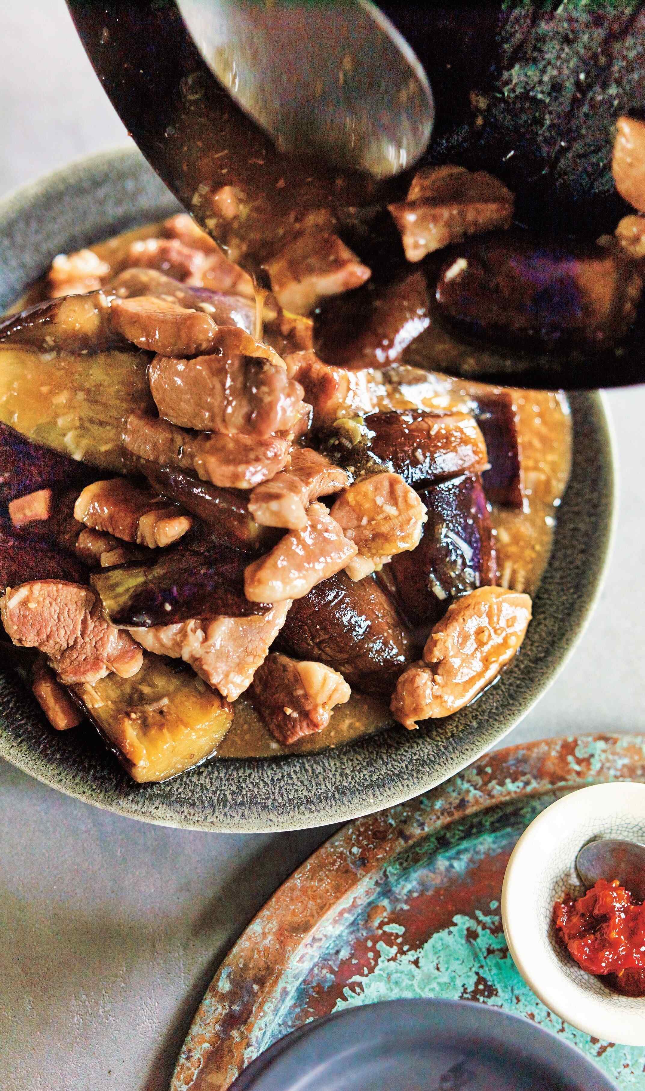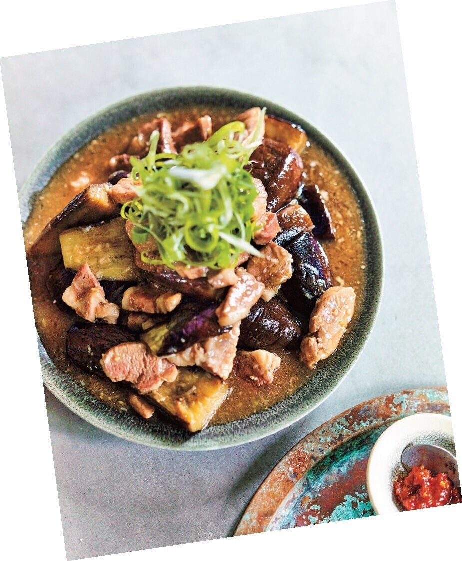 なすを戻し入れ、再び煮立ったら水溶き片栗粉を回し入れ、手早く混ぜてとろみをつけ、ねぎを加えて混ぜる。器に盛り、あればわけぎをのせ、好みで豆板醤を添える。