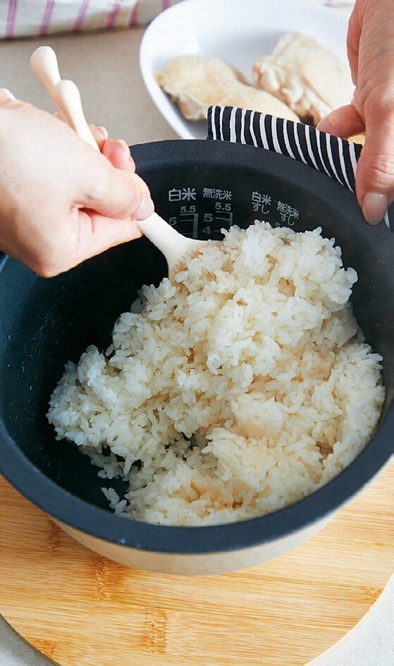 ・ここでは5.5合炊きの電気炊飯器を使用しています。圧力式炊飯器、ガス炊飯器など炊飯器の種類によっては調理に向かない場合もありますので、取扱説明書を確認するかメーカーにご確認ください。