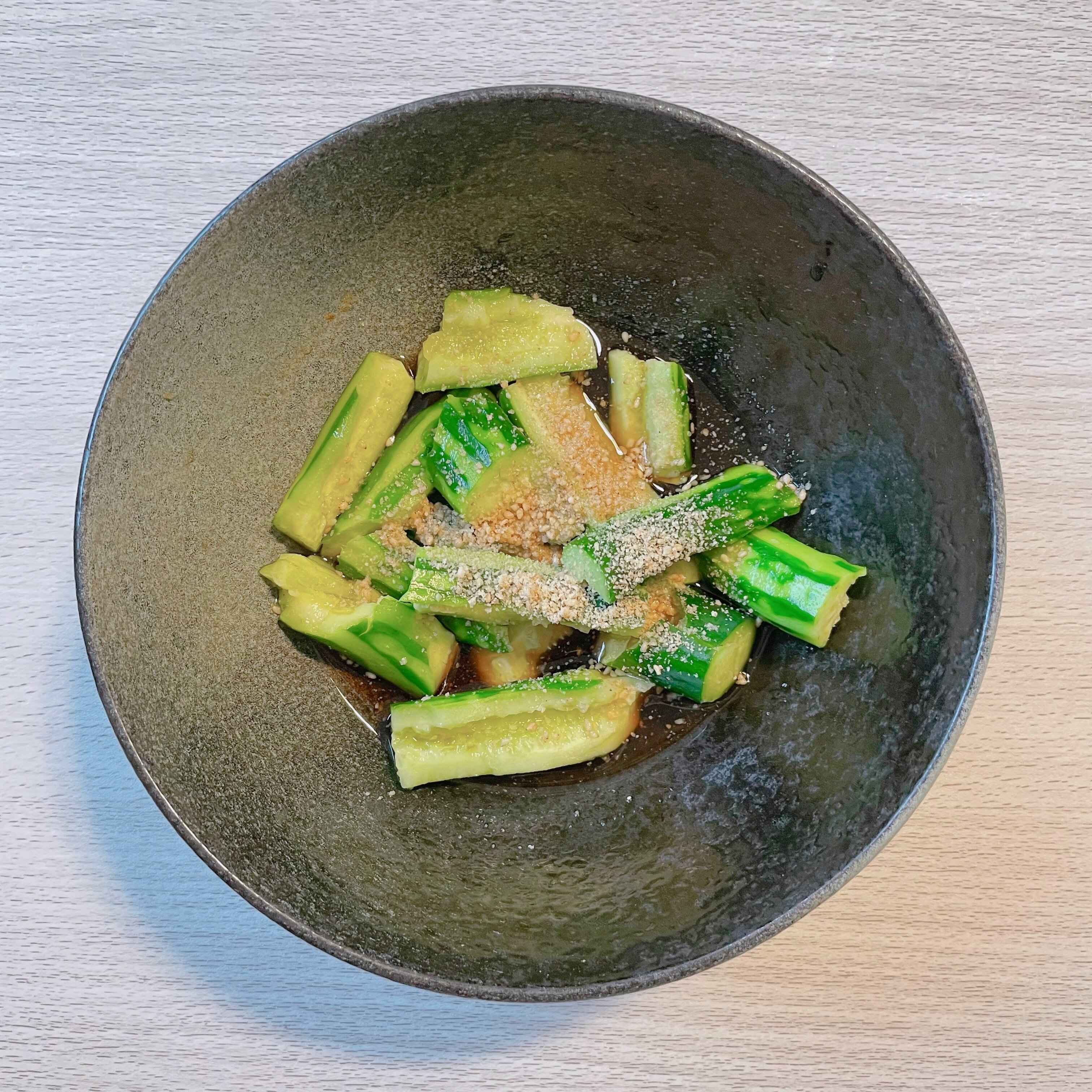 つぶして手でちぎったきゅうりをめんつゆに漬けるだけで、あっさりとした「たたききゅうり」の完成です。