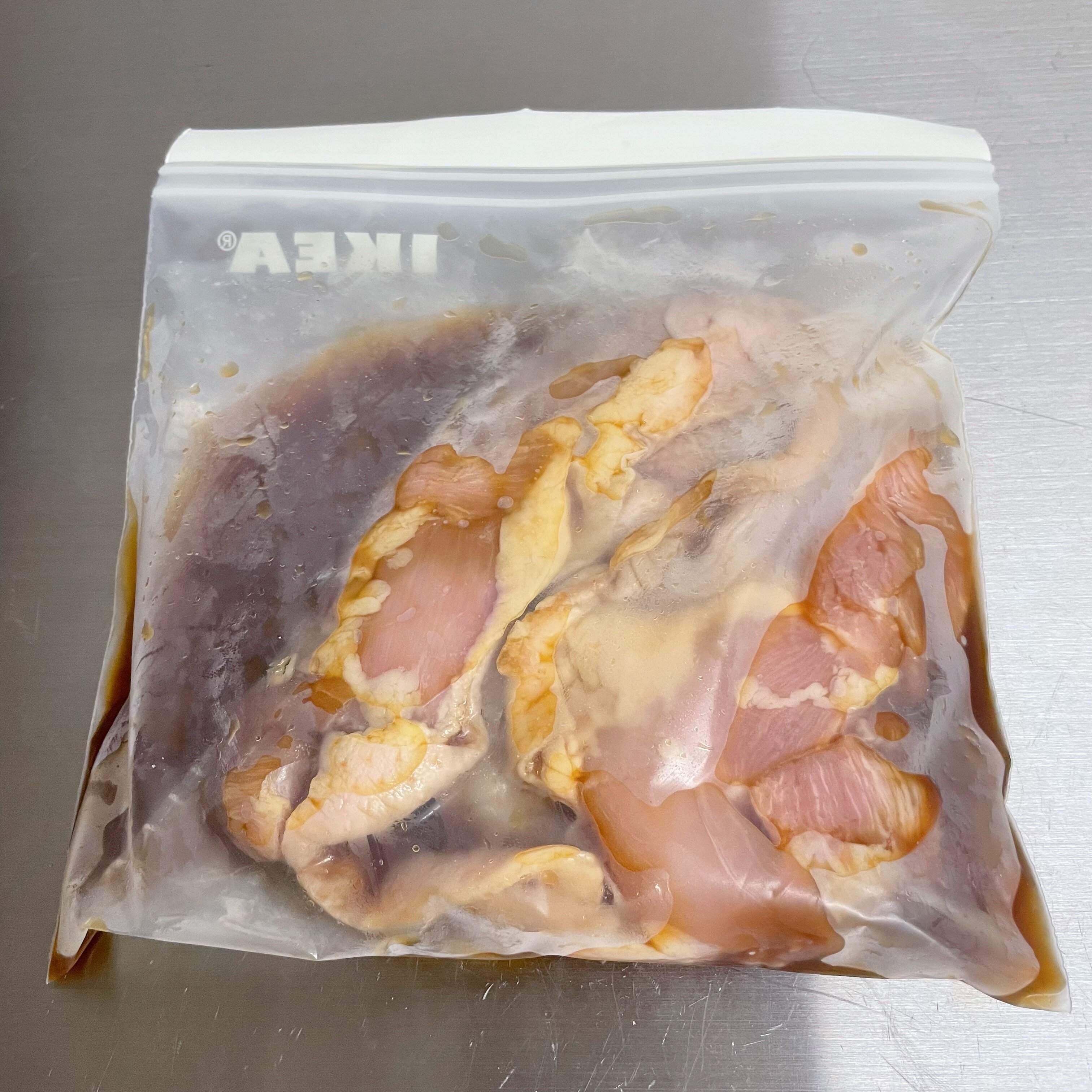 前日に鶏肉をまるごとめんつゆに漬け込んでおきます。
