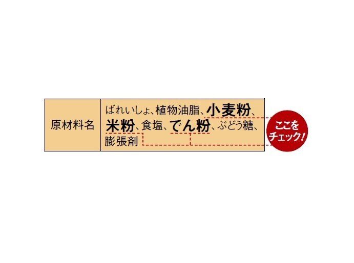 表面を味つきの薄いころもでコーティングしたタイプなら、どの市販品でもおいしくできます。原材料表示に、小麦粉、米粉、でん粉などころもの材料が表示されているタイプを選ぼう!