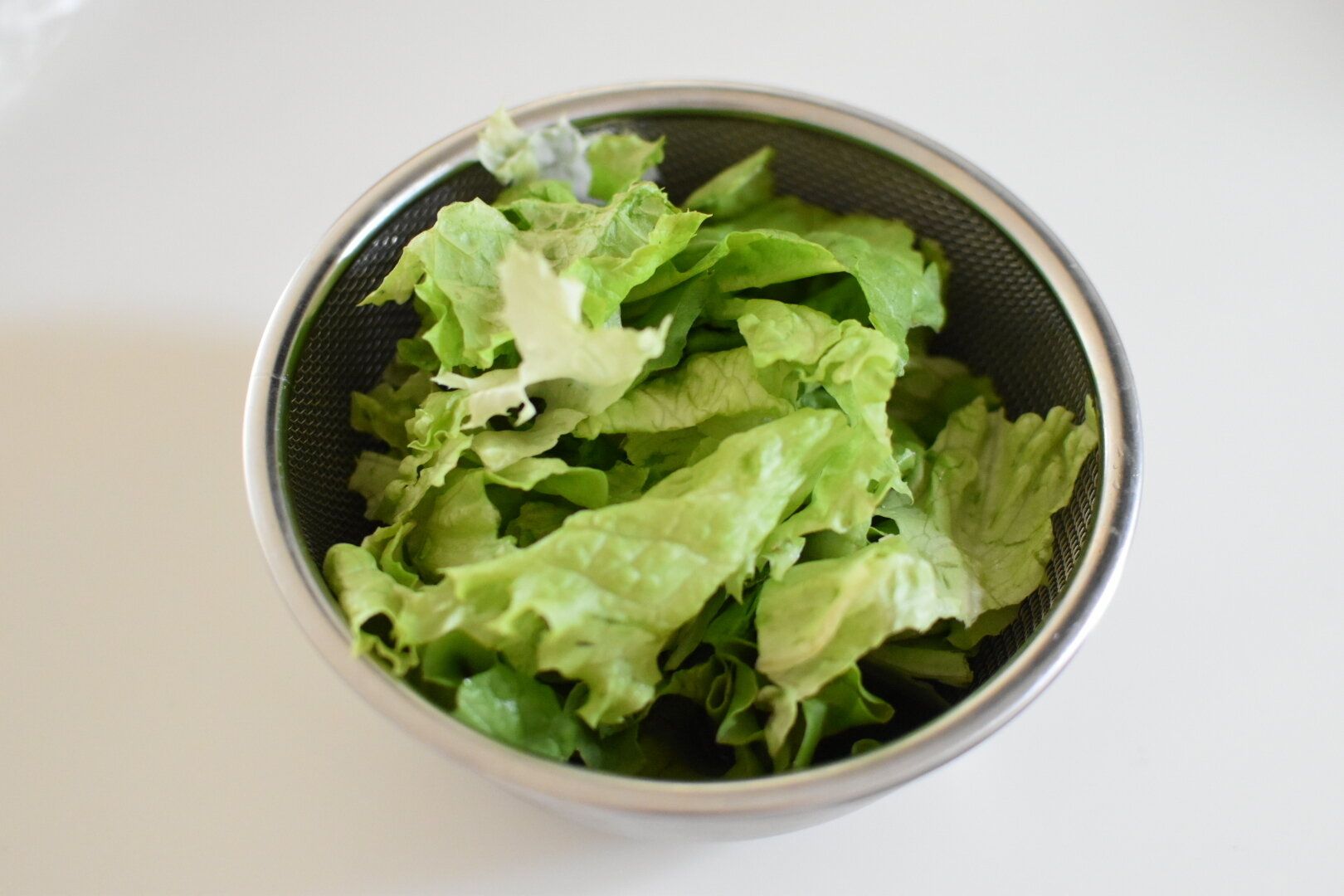 1.リーフレタスを水で洗ってしっかり水気を切ったら、食べやすいサイズにちぎる