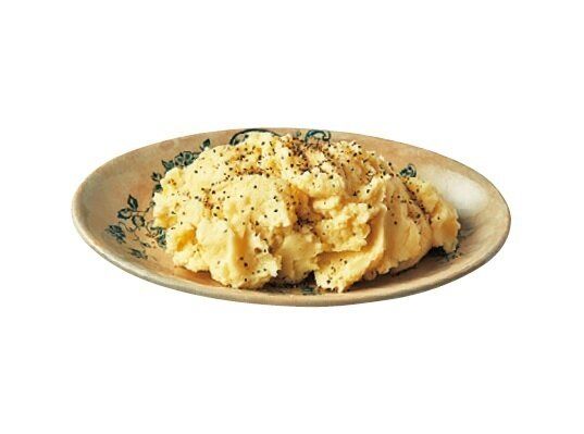 (1)じゃがいも3個(約450g)は3cm角に切る。耐熱ボウルに入れてふんわりとラップを掛け、電子レンジで10分加熱する。(2)バター40gを加えてつぶし、牛乳90mlを加えて混ぜ、塩適量で味をととのえる。器に盛り、粗びき黒こしょう適量をふる。