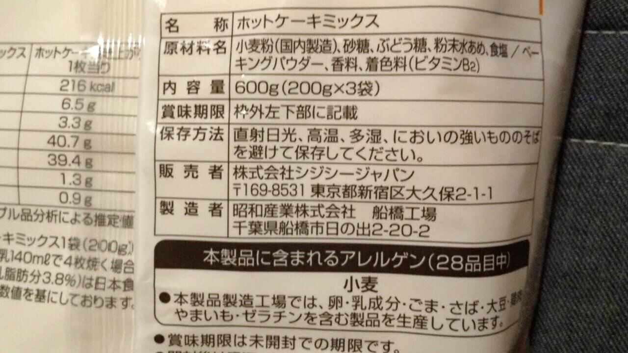 実際に、筆者の手元にあったホットケーキミックスの原材料を確認してみると、