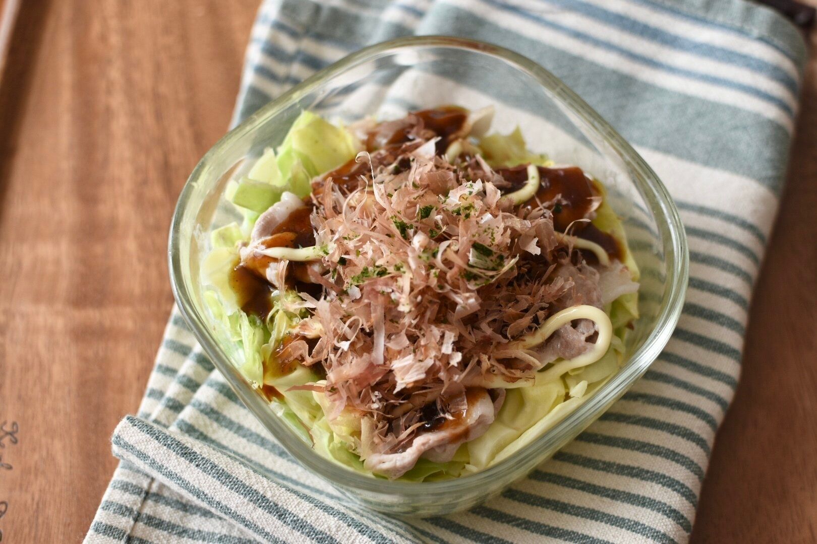 粉類を使わず、耐熱容器で仕上げる、ズボラお好み焼きを紹介します。
