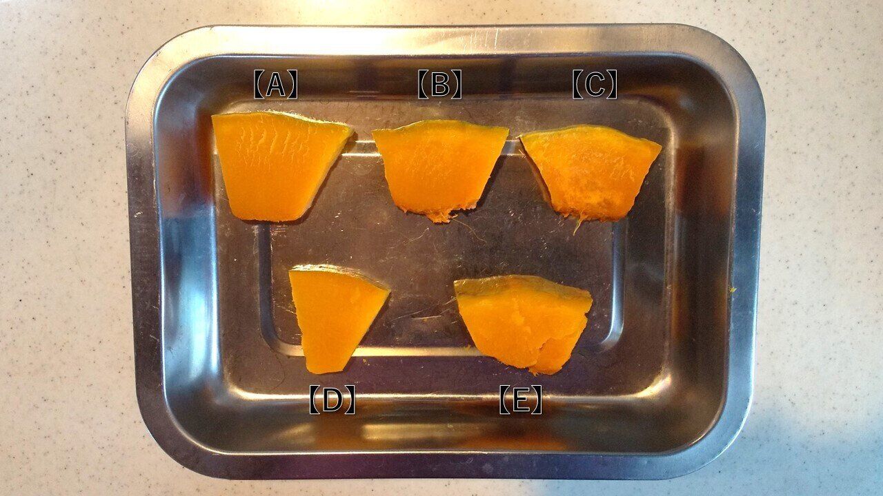 かぼちゃがおいしく仕上がったのは【A】【D】【E】