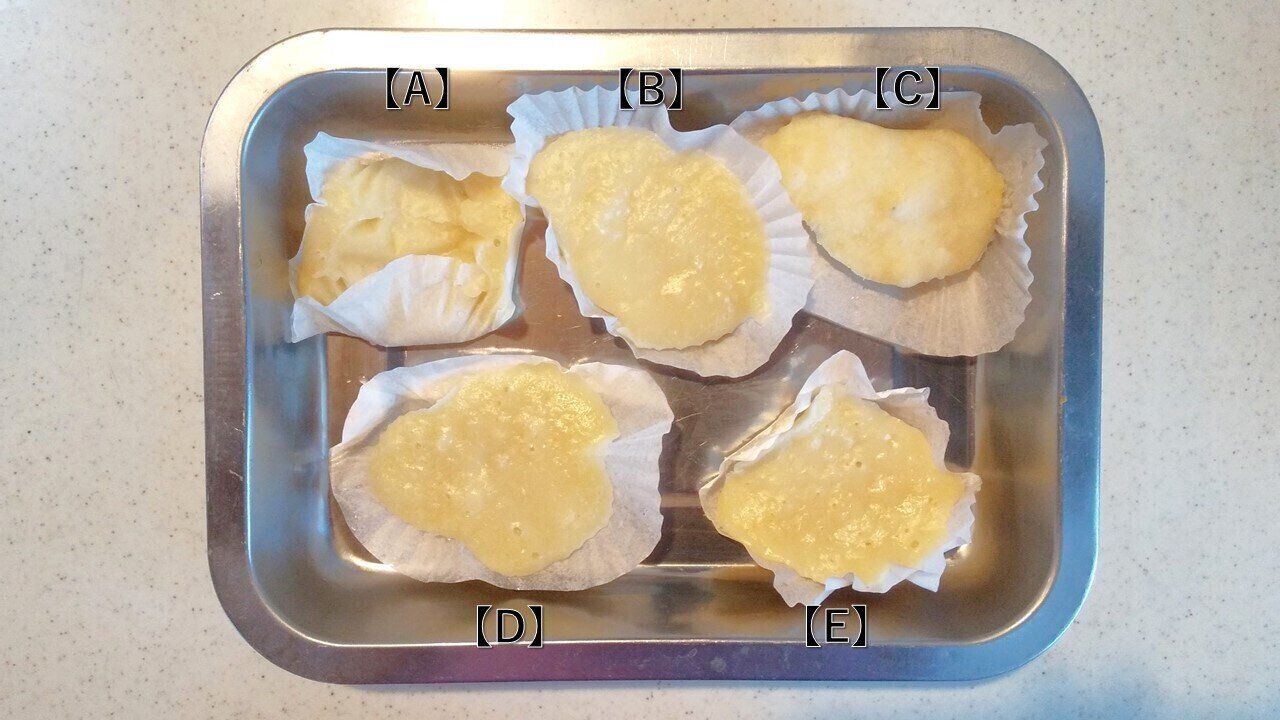 竹串を刺してみて生地がつかないことを確認し、それぞれを食べ比べた結果は以下のとおり。