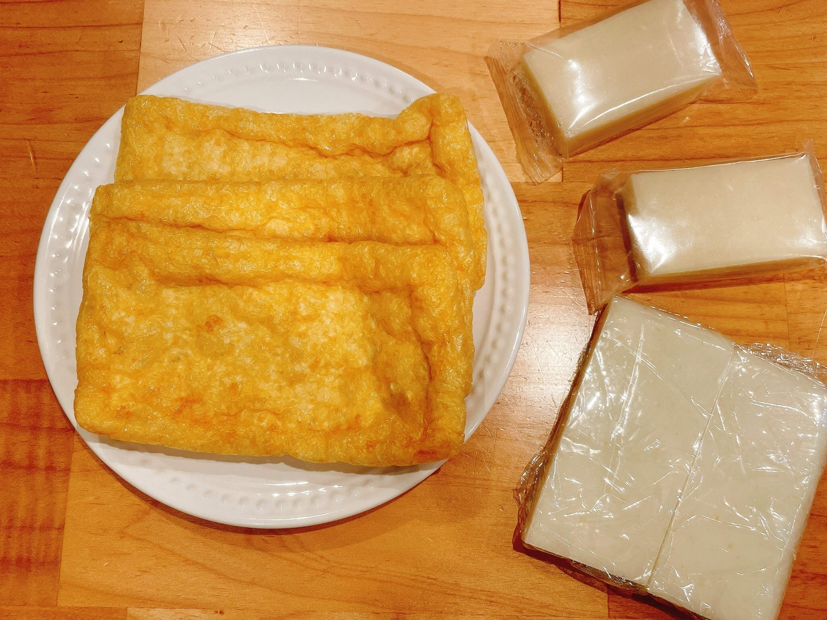おもちと油揚げを使っておもちいなりをつくっていきます。