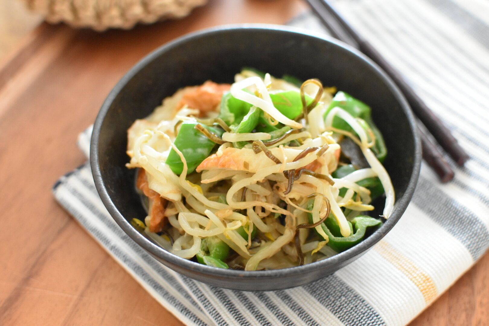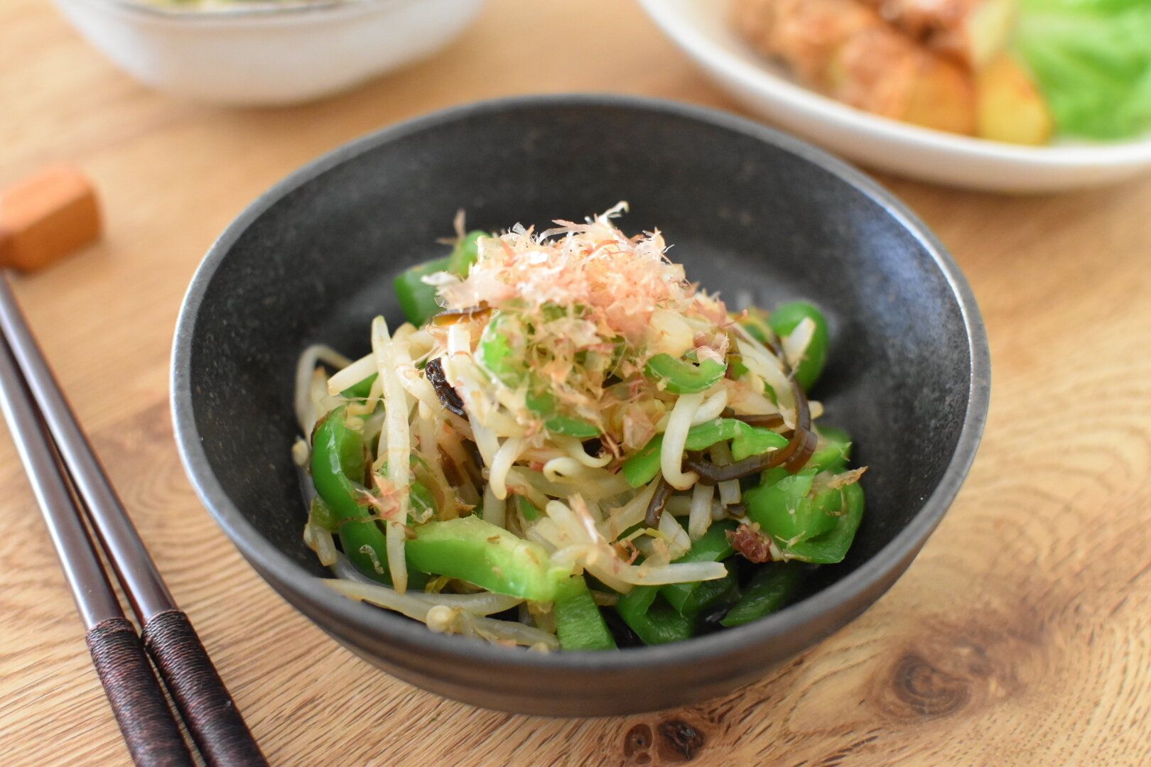 ピーマンともやしの塩こんぶマヨ和え