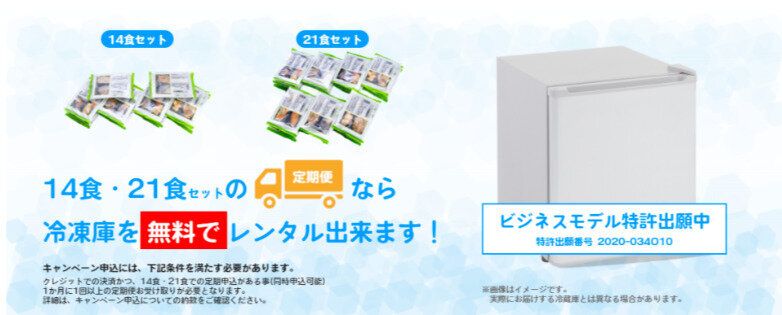 『まごころケア食』では、14食または21食を定期購入すると冷凍庫の無料レンタルが可能です。1セットにつき冷凍庫1台をレンタルできます。