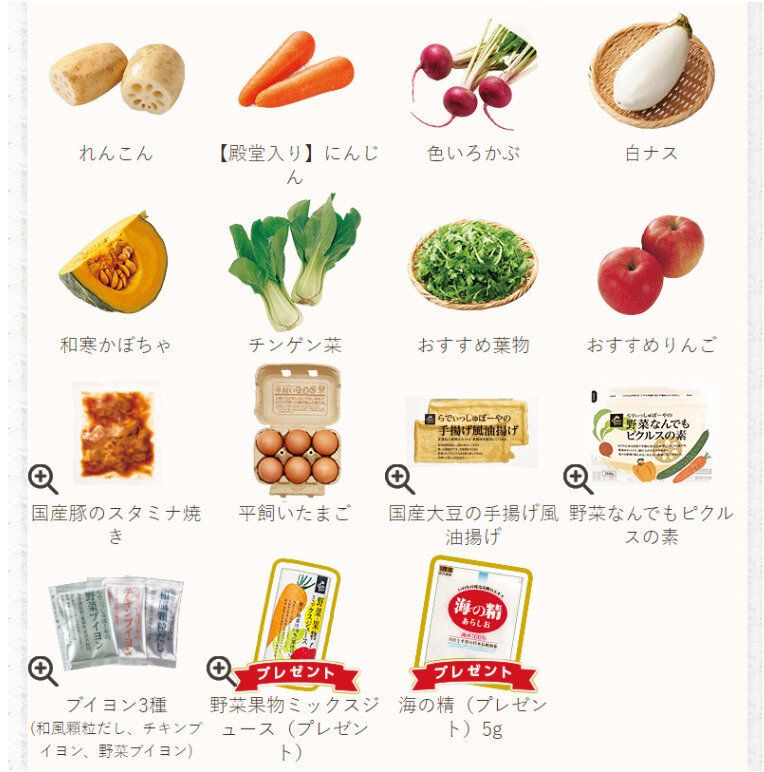 『らでぃっしゅぼーや』のお試しセットの内容は時期により変わりますが、おおむね以下のとおりです。