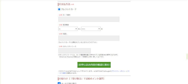 おためしセットの支払いは、クレジットカードのみです。クレジットカード情報を入力します。