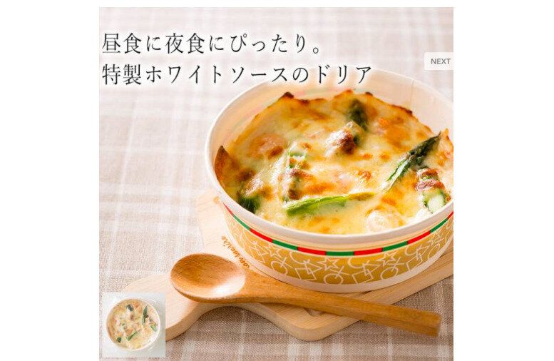 ランチや夜食に利用したいのが、この「レンジでできるアスパラと海老のチーズドリア」。発売当初から安定した人気を誇る『わんまいる』のオリジナル商品です。