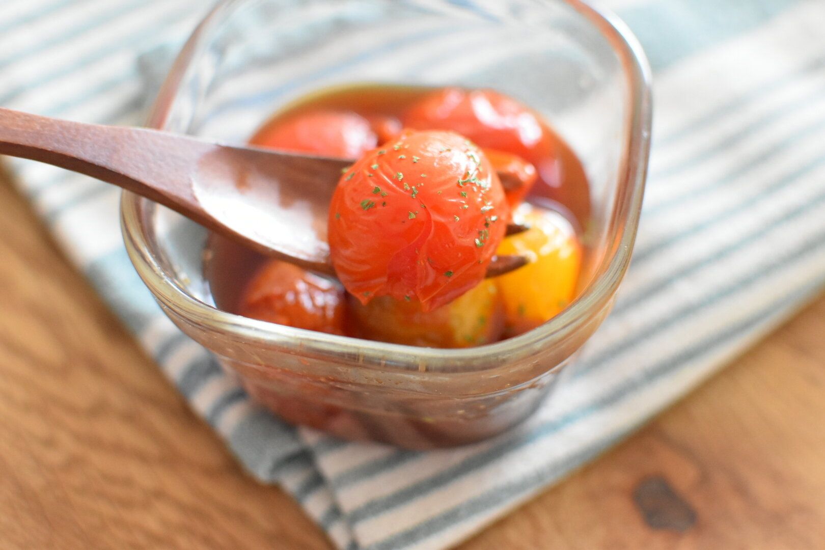 サラダに添えたり、そのまま食べておいしいプチトマトもめんつゆにおまかせ!