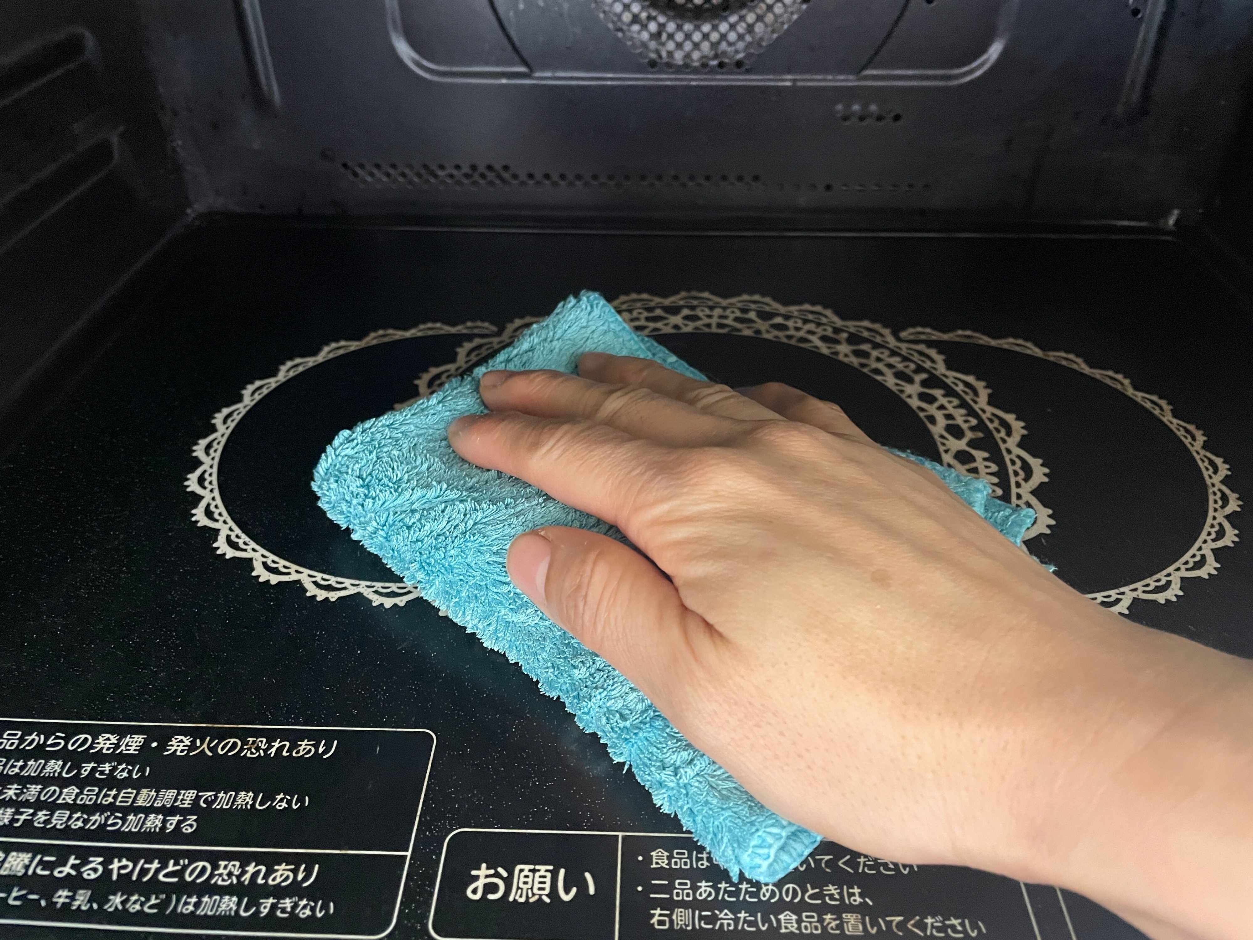 使い古した歯ブラシなどに歯磨き粉をつけ、電子レンジの中を擦って汚れを落としましょう。汚れが取れたら、キッチンペーパーや布巾などできれいに拭けば終わりです。