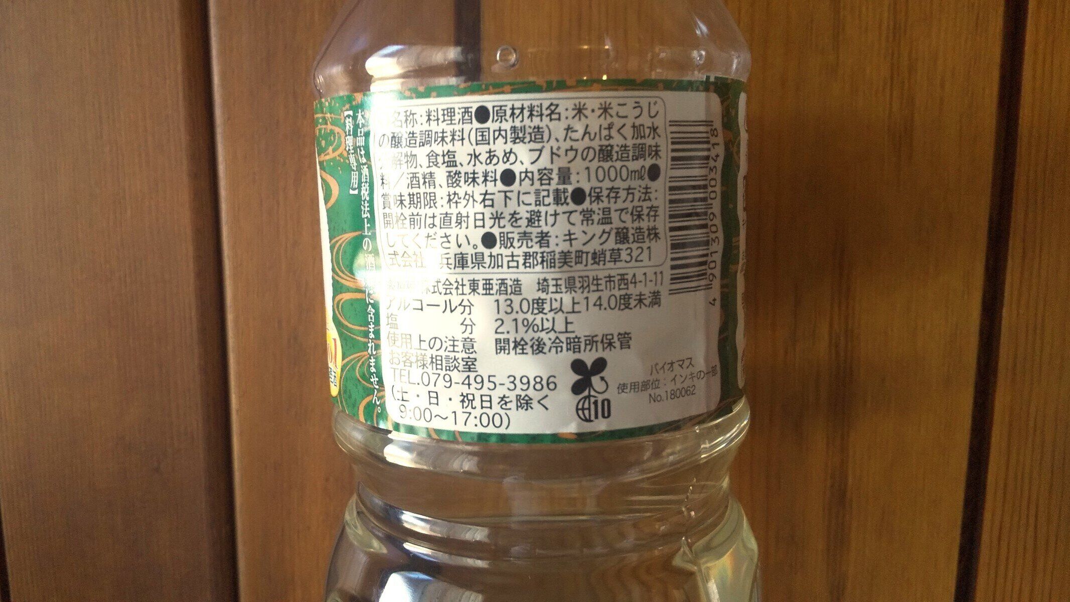 実際に、筆者の手元にあった料理酒の原材料を確認してみると、