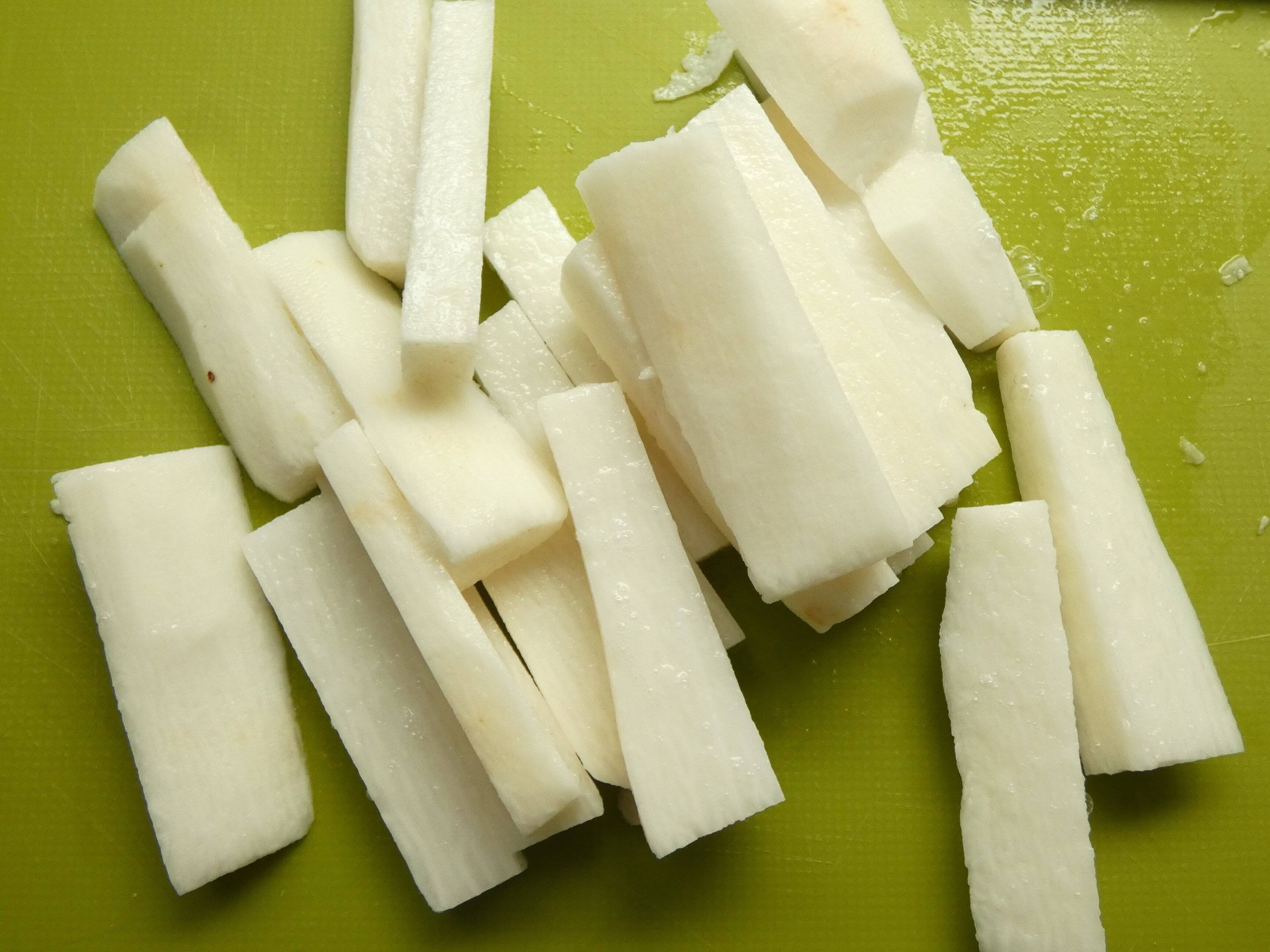 【1】長芋は太さ1cmくらいのスティック状に切ります。