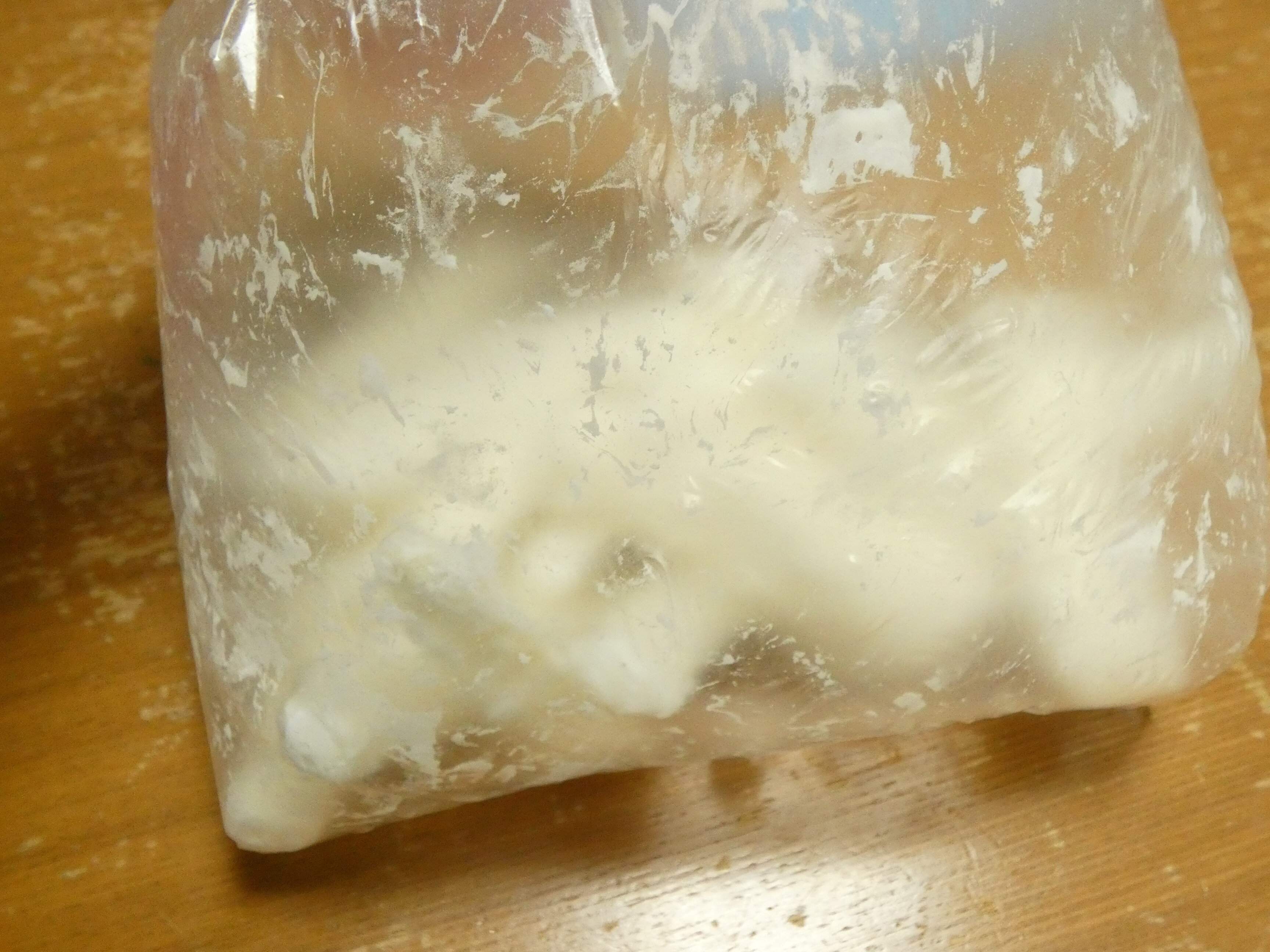 【2】ポリ袋に長芋と片栗粉を入れて振り混ぜます。