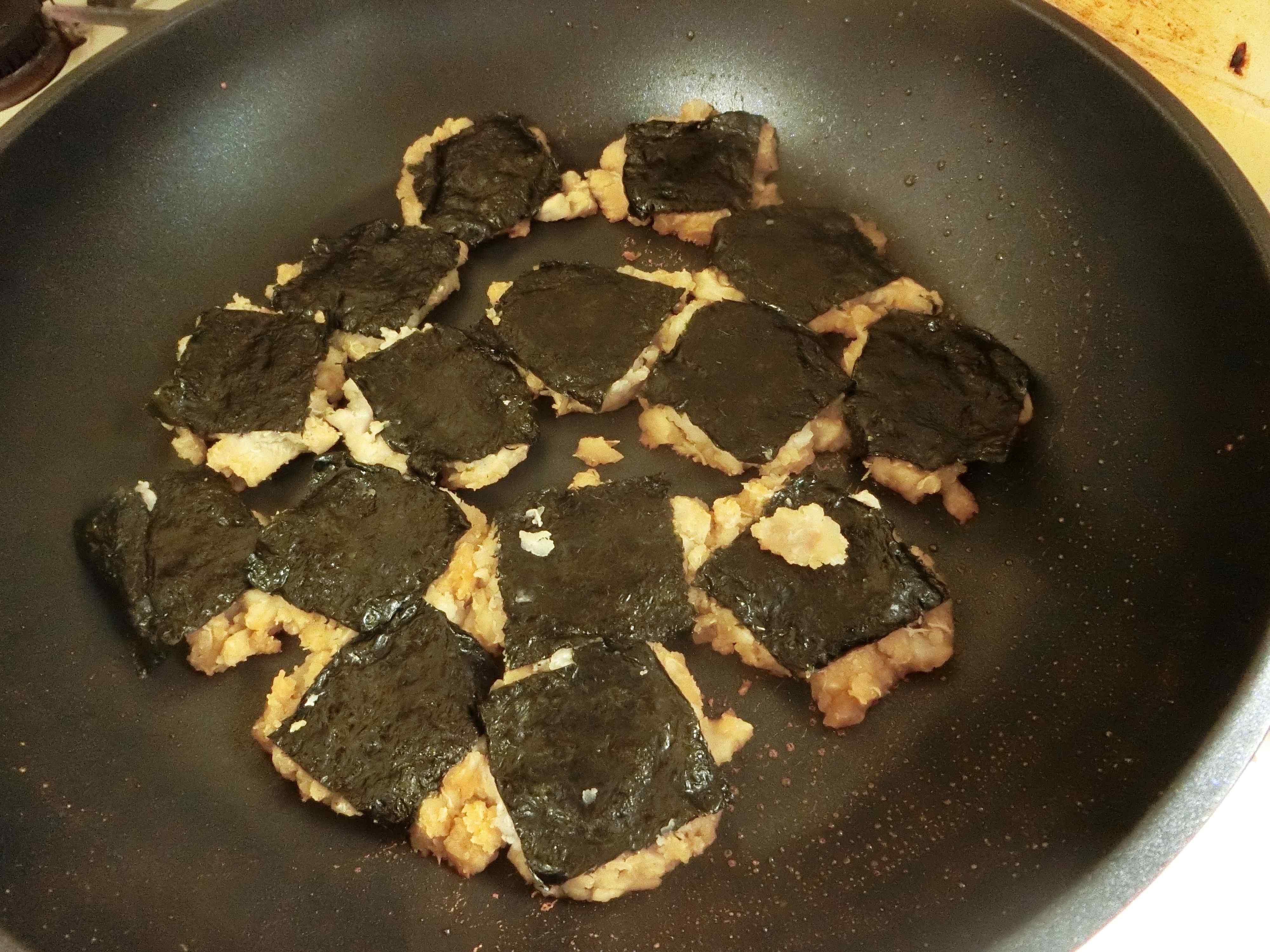 里芋はスプーンで塗りつけるようにすると、海苔にしっかりつきます。