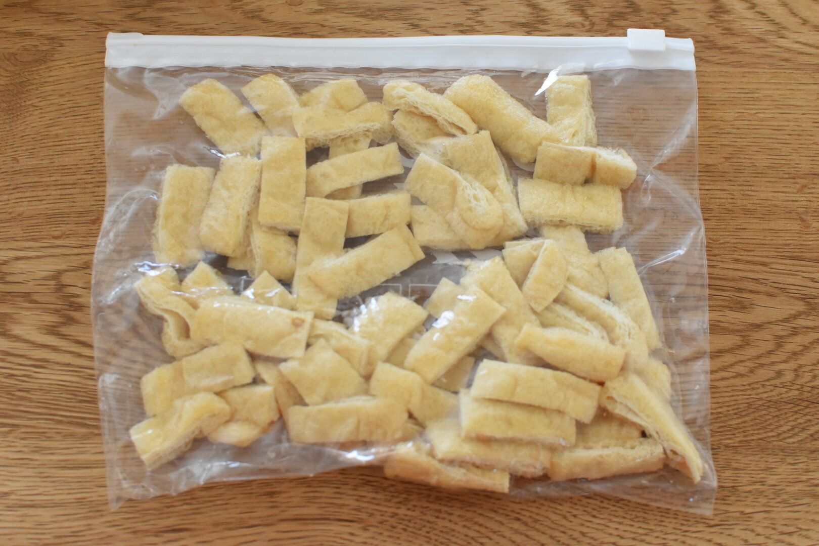 煮物に使ったり、味噌汁の具材としても欠かせない”うす揚げ”も、冷凍保存が便利です。
