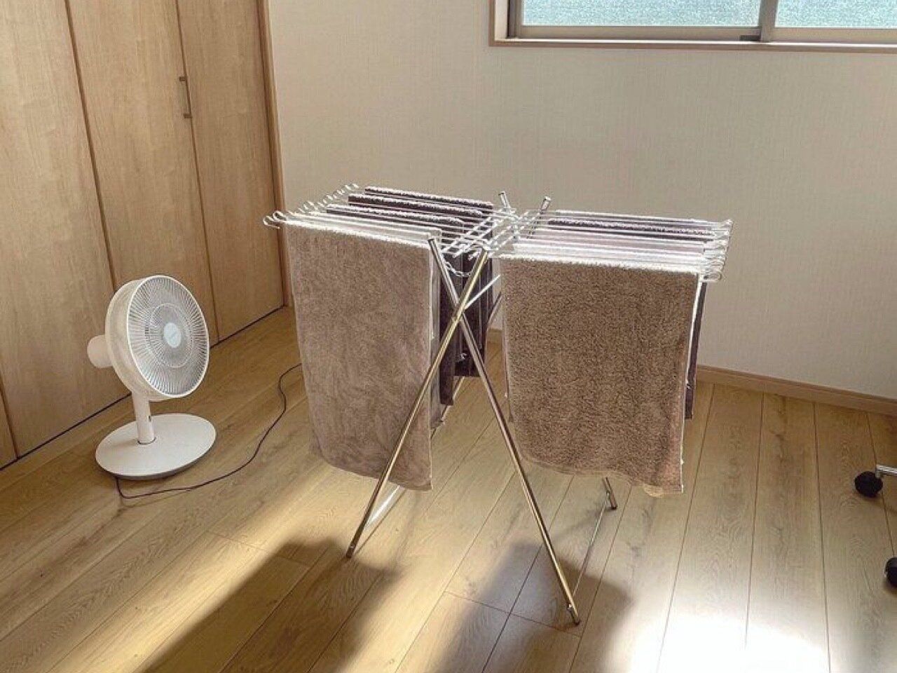 フロアに置くタイプのタオル干しハンガーを導入すれば、子どもの手の届きやすい位置になるので進んでお手伝いをしてくれるようになります。ハンガーで洋服を干す作業はハードルが高くても、タオルを干す作業であれば小さな子どもでも楽しくできます。